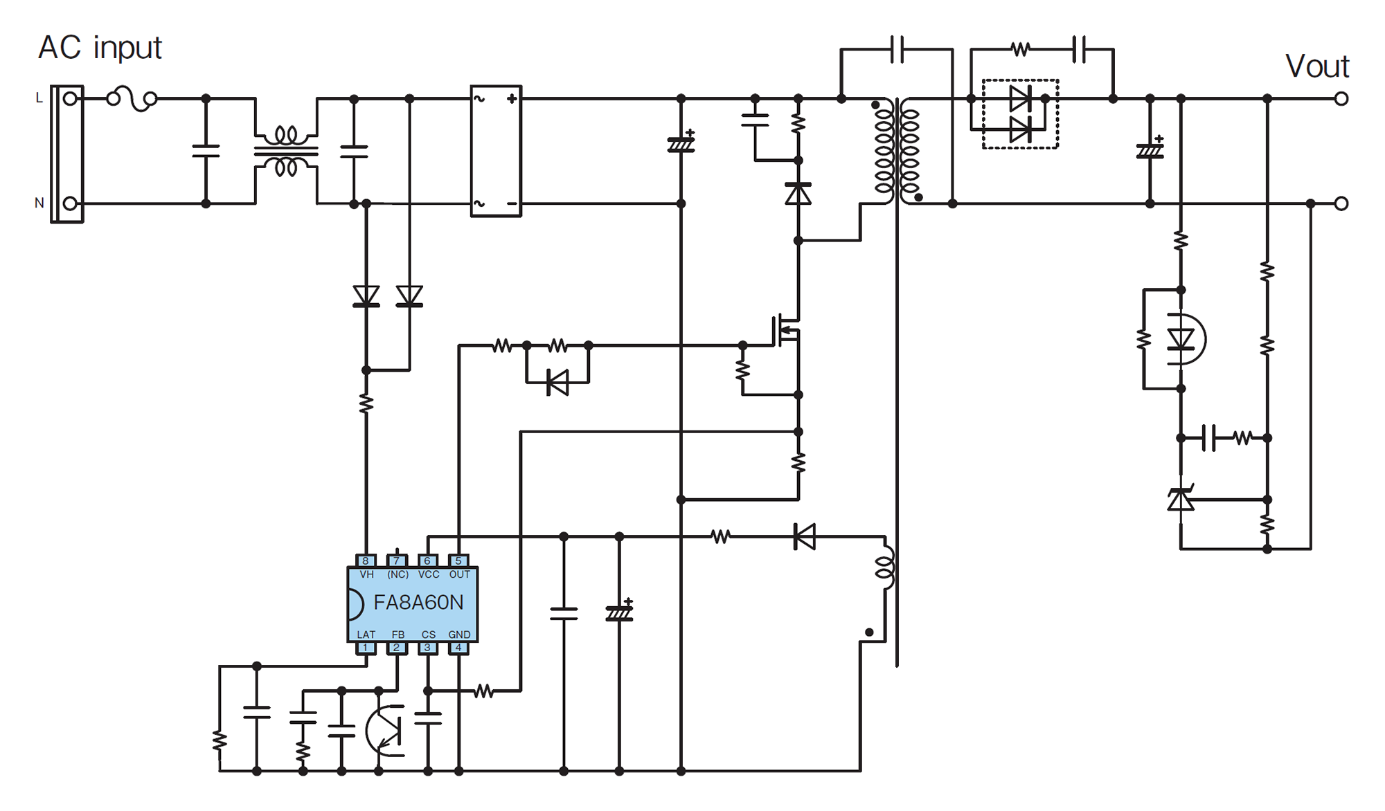 FA8A60N是一款可直接驱动功率MOSFET的电流模式开关电源控制IC。虽然它是8针的小型封装,但集成了丰富的功能,因此最适合用于轻负载时的省电化和减少外置部件数量,可以构成结构紧凑且具有高性价比的电源。